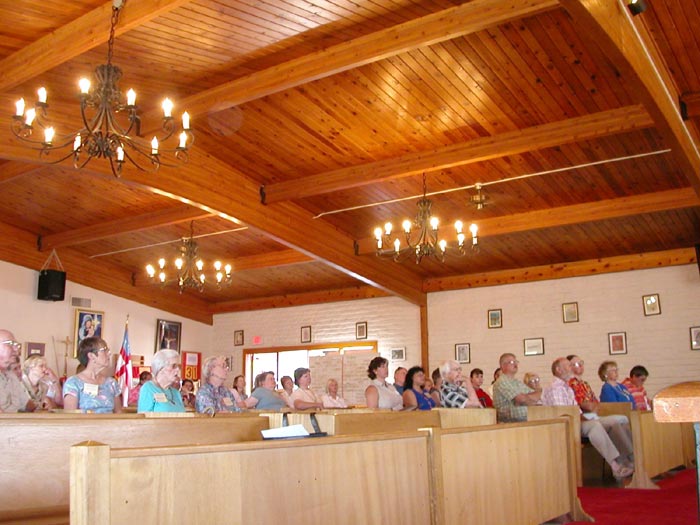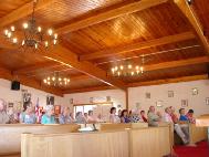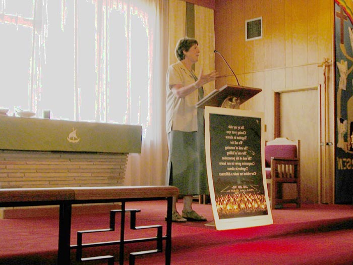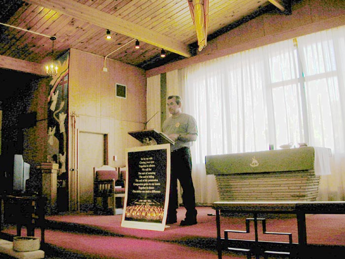 接着学员们以自己修炼前后身体的变化为例说明法轮功祛病健身的神奇功效;并向与会者演示了功法,整个介绍会气氛融洽祥和。学员们还回答了大家的许多问题。大多数人索取了真相资料:“历史的见证”和“简报”。许多在场的人对功法本身表现了极大兴趣,有的还想在教堂开始集体炼功。