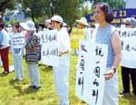 一位法轮功学员认为,香港特区政府在北京示意下推动的反颠覆23条基本法立法,乃是针对法轮功而来,当天有不少各地法轮功学员赶到华府响应这次集会。