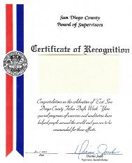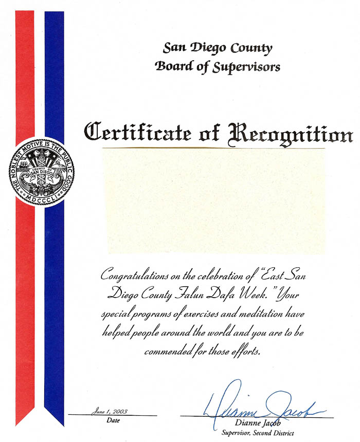 祝贺“东圣地亚哥郡法轮大法周”庆典活动。你们特殊的功法和打坐使全世界的人们受益,你们的努力应该得到称赞。