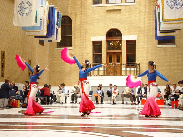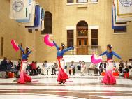 | 州政府大楼内的答谢会 | 向州议员颁发感谢证书 | 学员表演舞蹈 |