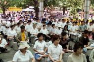 2003年7月13日,韩国法轮功学员在汉城大学路“迈洛尼公园”举行集会,呼吁帮助制止在中国发生的历时四年的对法轮功的残酷迫害。