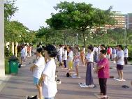 新加坡河畔的鱼尾狮像是著名的旅游点,这里是一个世界的小窗口,每天都有数百上千名来自各国的游客参观,其中有许多是中国游客。随着学员们对正法修炼伟大意义的认识的明确,以及师父在新经文中对讲清真象的指导,我们由较为零散自发地在这个地方炼功,转为固定时间每日炼功讲真相,风雨无阻,救度众生。学员们摆放中、英等许多语种的简介及真象材料,主动耐心地向游客们介绍法轮大法是正法,清除人们头脑中的谎言的毒害,激发起他们内心深处的善念。数不清的旅客在这里了解到了真相,有了走向美好未来的希望。