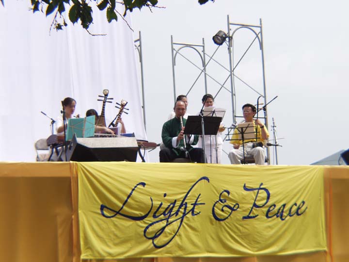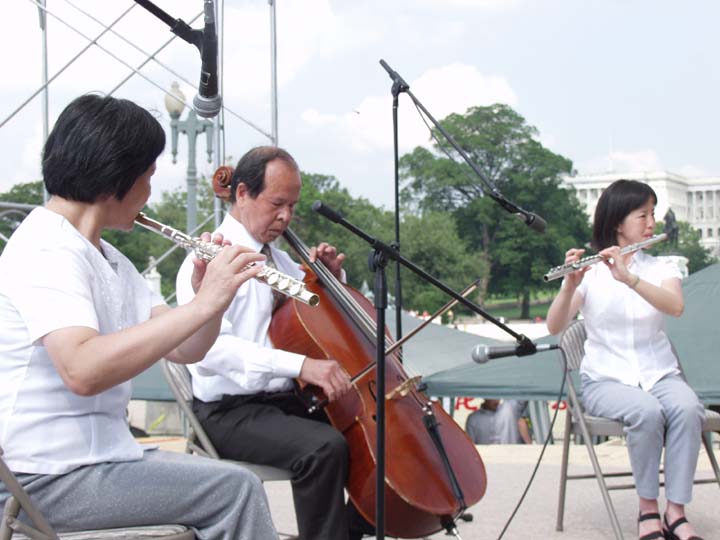 参加这场演唱会的法轮功学员包括中国著名歌唱家关贵敏,他1996年开始修炼法轮功,目前居住在美国。他在演唱会中说,他原先是一个老病号,在炼了法轮功之后,身体变好了。他不理解中国政府为什么这样不可理喻、毫无理智地去镇压。他希望大家来真正地了解法轮功。