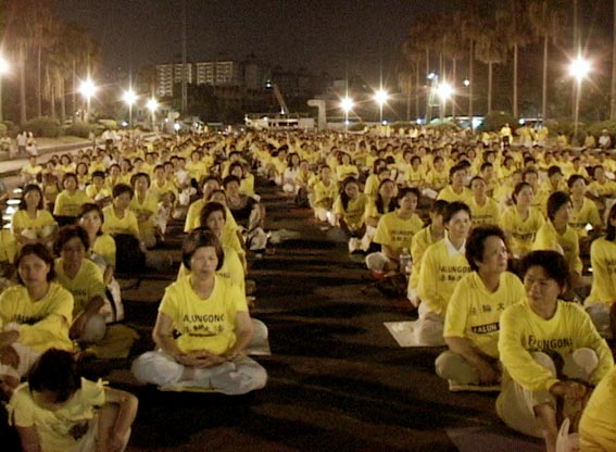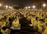 游行于下午五点顺利地在文化中心结束,晚上六点半钟在劳工公园举行「声援晚会」。法轮功学员们展现多才多艺的一面,祥和的功法表演、2002年见证影片、及大法歌曲演唱都凝聚了大法弟子们的心。晚会于9点发完正念后结束,为今天活动划下圆满句点。