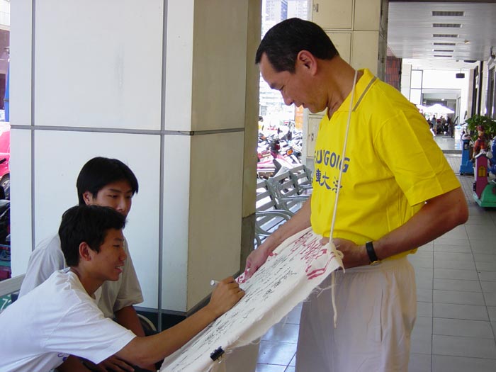 由于此次活动历史意义非凡,如何由常人能接受的角度去讲清这件历史大事,触动人们心中的善来支持,让他们能有一个美好的未来,是我们所要做的。于是由7/12开始,法轮功学员就在高雄市各热闹景点进行「声援全球公审江泽民」征签活动。通过学员拿着展板征签活动,更能细致地向世人讲清真相。在听完江××对于中国法轮功学员残酷的迫害行为后,正义良善的人民都能签下自己的名字,有些民众也发表了江××早该受到公审的心声。