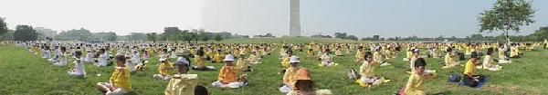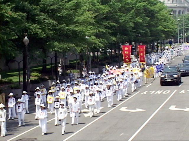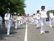 本此游行的组织者之一戈敏介绍,每年的7月20日,各地法轮功学员都会聚集到华府,呼吁维护正义良知,支持受到不公待遇的中国法轮功学员,而且来的人一年比一年多,今年有60多个国家的5000多名法轮功学员来到华府,是人数最多的一次。