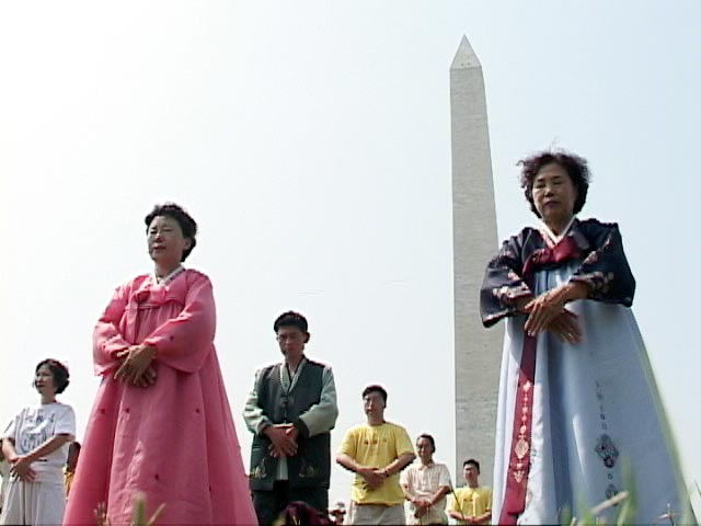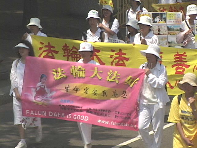 穿着鲜艳民族服装的韩国学员在游行队伍中很显眼,学员全洪大、张淑和陈英姬介绍,这次韩国来了50多名学员,其中不少是第一次来美国。