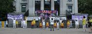 7月20日,在江泽民集团迫害法轮功和法轮功学员四周年之际,部分温哥华法轮功学员在市中心艺术馆前举行新闻发布会,呼唤人间正义良知,要求公审江泽民,停止对法轮功的迫害。