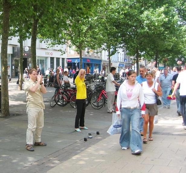 我们不停地穿梭在来往的路人中,为他们送去大法真相,缓缓流动的大法音乐,唤醒着路人的良知。我们发自内心地告诉路人大法真相,真诚祝福善良的人们都有一个美好的未来。