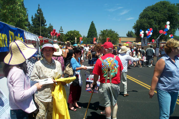 这个女孩也去看。她说在中国的时候,她的学校给每个人发了一本关于法轮功的书,书里的内容跟光盘里讲的完全都不一样。她想搞明白到底是怎么回事。所以她又来索取资料来了。
