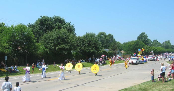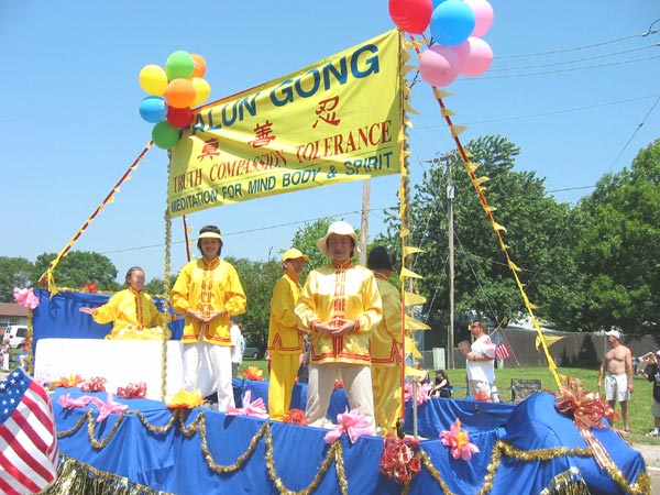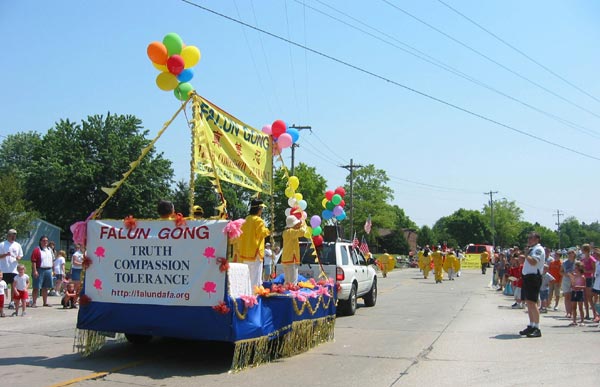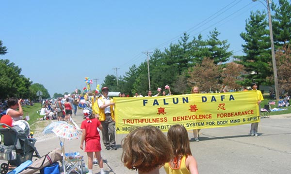 在这个快速发展起来的新兴城市,人们已对法轮功有所了解,奥弗龙市长也在今年3月褒奖“法轮大法日”。这是法轮功学员第3次参加当地的国庆游行。除附近圣路易市的学员外,参加“2000英里汽车营救之旅”的苟北和吴雪原博士夫妇,以及田纳西和阿拉巴马州的几位学员也于当日抵达支援。吴雪原博士夫妇通过舞蹈把法轮大法的美好带给这里善良的西方人,在自由的国土上可以尽情地表达对大法的赞扬。而在大洋彼岸,吴雪原的妈妈,68岁的曾令文教授却因坚修大法被判了两年劳教,关押在吉林省长春市黑嘴子女子劳教所。