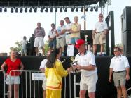 国会议员艾肯也参加了这次游行。他站在车上向两边人群致意时看见一位身穿“法轮功”黄T恤衫的大法弟子,远远地就向学员招手。握手后,他对学员说:“很高兴能在这里见到你们。”学员说:“谢谢你对法轮功的支持。”艾肯微笑着说:“这是我的荣幸。”游行结束后,法轮功花车在100多个团体中脱颖而出,获得“最具特色花车”奖的第二名。学员到主席台领取奖杯后,有当地的西人上前祝贺我们,并表示要去炼功点学功。