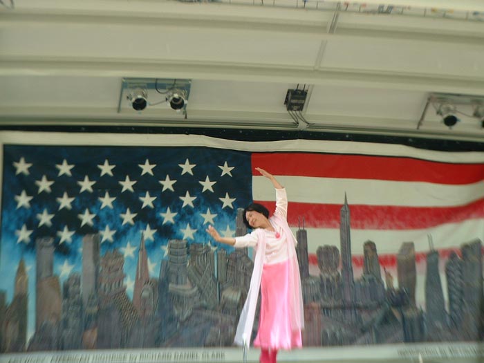 学员们还参加了当地为纪念独立日的文艺表演。学员表演的节目有唱歌和中国传统舞蹈。歌曲表达了对大陆大法学员勇气的钦佩和赞美,呼吁善良的人们伸出援手,支持在中国大陆受迫害的学员。表演舞蹈的是一位年逾六旬的女士,她那轻灵流畅的舞蹈动作加上她的年轻的面容很难让人把她与她的年龄联系起来。她的舞蹈赢得了大家热烈的掌声,并对法轮功的健身的神奇功效留下了深刻的印象。