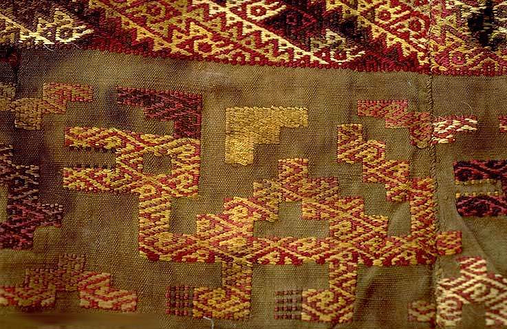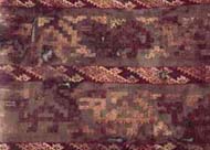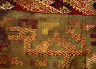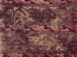 在发掘了当地一个据信有一千三百年之久的古墓中(ca. 700 A.D.),除了发现死者外,还发现部份的祭祀陪葬品,这包括了一些陶器及一张织工极为精致的挂毯,挂毯中的构图是以恐龙为基本图形作简单而重复的边饰,而陶器上的绘画也以描绘出一只活生生的恐龙作为主要装饰。
