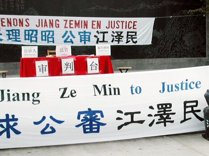据组织这次活动的学员表示,对江泽民的公开(象征性)审判还将继续进行,借此向广大民众全面揭露江××迫害法轮功,毒害世人的罪恶行径,并呼吁人们在自己的人心法庭、道德法庭上郑重审判江××。