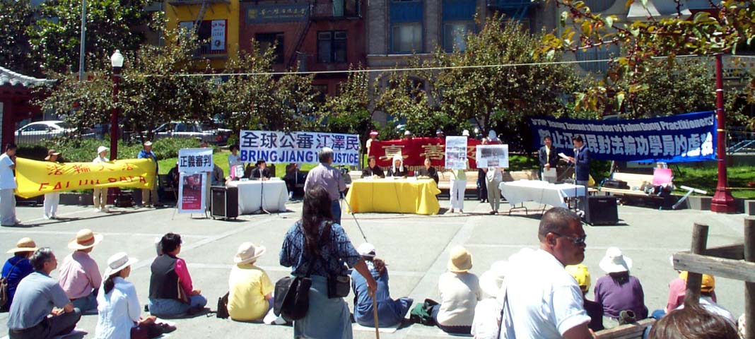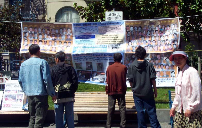 8月16日上午10时,加州湾区的法轮功学员们来到旧金山中国城花园角,进行“正义的审判”。当学员将图片展开,就有围观者叫嚣和谩骂。而平时周末车流较通畅的高速公路,也出现了严重堵车的现象。学员们意识到是邪恶的干扰,马上发正念清除。