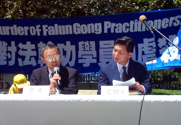 刚从中国大陆被营救来美的北京学员卞旭庄,代表中国大陆受迫害的法轮功学员出庭作证。他以自己的亲身经历,证明4.25大上访是合理合法的行使宪法赋予公民的基本权利。江氏集团的所谓“围攻”完全是捏造和违背事实的。追查迫害法轮功国际组织的代表黄宇正出庭作证,说明所谓的“自焚”事件完全是一场有预谋的骗局。黄说,如果把中央电视台的录像画面进行慢镜头分析就会发现很多疑点。美国公民李祥春的未婚妻符泳青向法庭提供了未婚夫在狱中被中国政府非法判刑,在狱中受到非人虐待的事实,证明了江氏集团不仅对中国的法轮功学员进行残酷的迫害,更是将这种迫害延伸到海外。