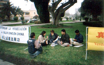 接待我们的是主管网页的记者,是个年轻小伙子。态度非常诚恳,当他看了中国大陆大法弟子受酷刑的图片时,听了我们讲的真象时大吃一惊,因为他不知道什么是法轮功(法轮大法)。他感到非常抱歉。他找来一位年轻人,介绍说是大报记者,希望我们详细再跟他讲一遍。我们从什么是法轮功,法轮功在中国开传至60个国家洪传,学炼法轮功人数达一亿讲起,接着我们以秘鲁法轮功学员向中国大使馆合法合理申请护照延期,而被中国大使馆无理注销护照的迫害罪证事实,讲述自1999年7月20日江氏集团在中国镇压法轮功以来,利用国家所有的工具对中国法轮功学员进行残酷镇压,同时利用媒体隐瞒事实,对法轮功进行歪曲事实,恶毒中伤。这种政治迫害已经从中国延伸至中国以外其他的国家。已经造成对各国民主利益的伤害。