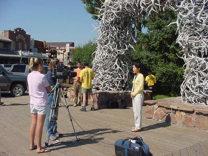 | 与县政委员会秘书Darewich合影 | 接受KJWY电视台采访 | 在杰克逊市 |