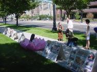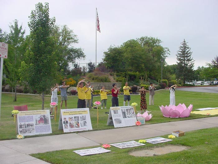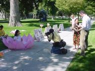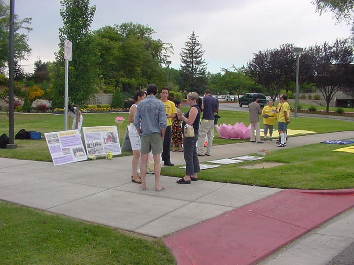 我们在爱达荷州的伯依斯(Boise)市举办图片展时,有一位印第安人说我们的功法非常和平,他也想炼功,并向我们要了电话。还有一位老人看到我们盘腿炼功,他说他做不了这个动作。我们告诉他,炼法轮功的什么年龄的人都有,也有80多岁的老人在炼。他说他可以试一下,并说:“一定是神把你们带到我们这里的。”