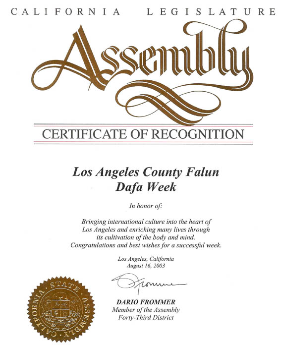 嘉奖“洛杉矶县法轮大法周”