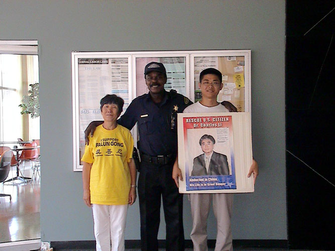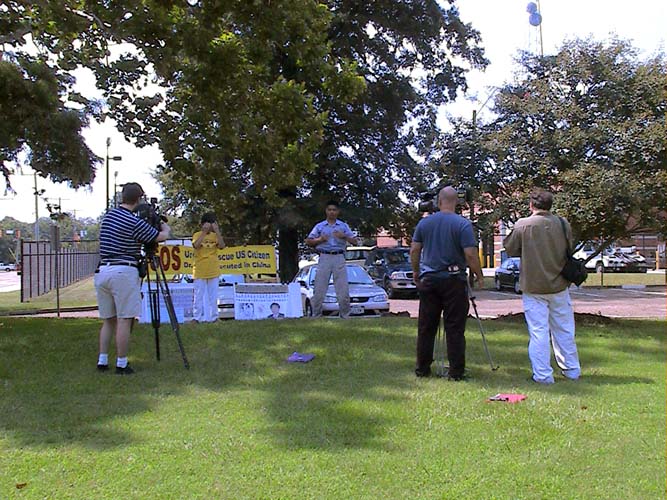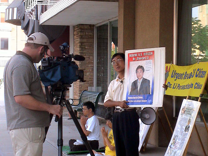 在接受采访中,学员讲述了四年来江氏集团对法轮功学员的残酷迫害,以及美国公民、法轮功学员查尔斯-李的情况。许多记者都问我们,美国政府和人们怎么才能帮助查尔斯,他们表示把相关的信息让老百姓都知道。有的记者当时就在我们的签名簿上郑重的签上了自己的名字并与学员合影表示支持。