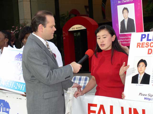 【明慧网2003年8月28日】8月25日清晨,离“营救李祥春跨美汽车之旅”抵达还有两天,密苏里州圣路易斯法轮功学员再次应NBC电视台邀请,参加“今日圣路易之窗”(Today's Window on St. Louis.)节目的现场直播。法轮功学员应邀就“营救李祥春跨美汽车之旅”作简单介绍,节目主持人还特别向观众重复了有关营救李祥春的网址和电话,并临时给学员增加了一段发言时间。