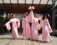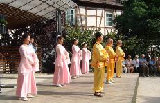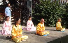 【明慧网2003年8月3日】7月12日德国法轮大法学员参加了在Calw市举办的文化节,这里是诗人、诺贝尔奖获得者Hermann Hesse 的出生地。在古老的木行架建筑的市中心正对音乐学校的舞台上,大法学员表演了自己创编的节目,有莲花舞、歌曲和笛子独奏。
