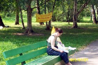 图片报道:莫斯科大法学员坚持户外炼功洪法