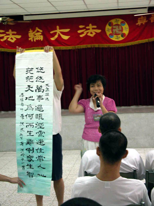 在第二天举行的心得交流会上,李洪志先生照例在会议结束之前给学员们解答问题。在讲解的过程中,李先生读到了这样一个问题。