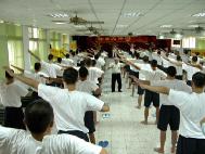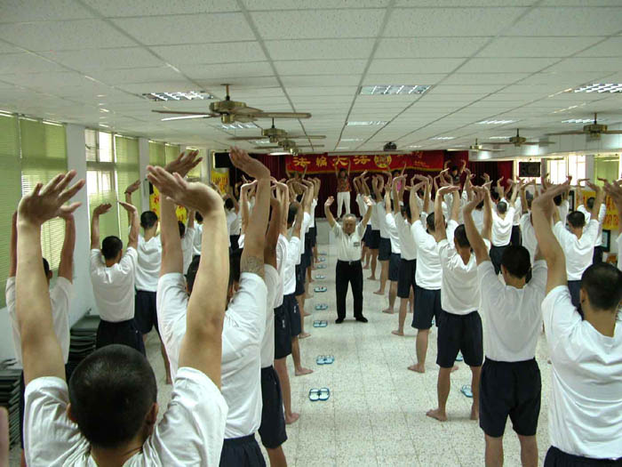交流会结束的时候,学员们起立和李洪志先生告别。