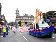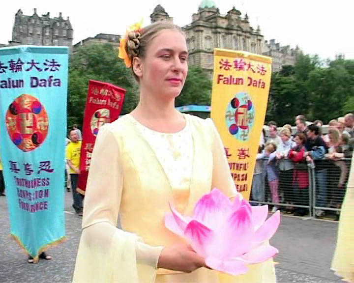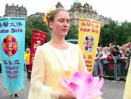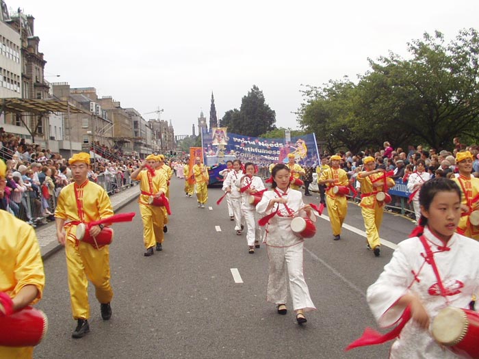 具有浓郁东方特色的法轮大法艺术团已经是第二年参加爱丁堡大游行。去年首次参加就勇得社区组第一名。今年法轮功的游行队伍以激越的陕北腰鼓和祥和的莲花舞互为映衬,再次打动了观众和评委的心,又一次拔得头筹。