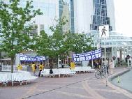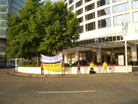 法轮功学员的活动约在上午9点,代表团离开酒店后结束。