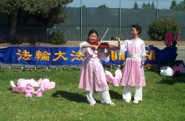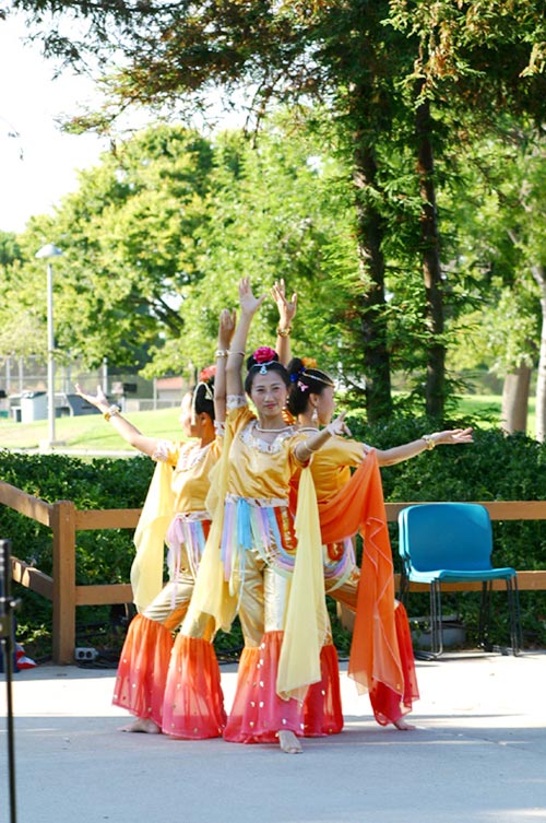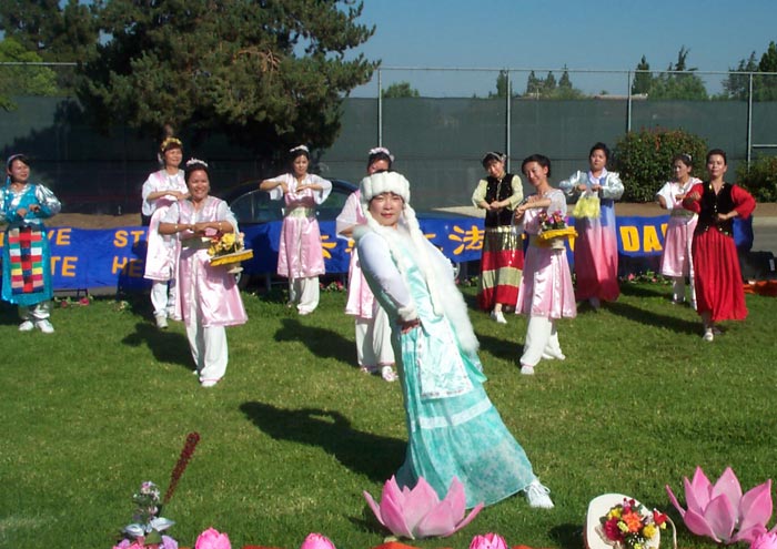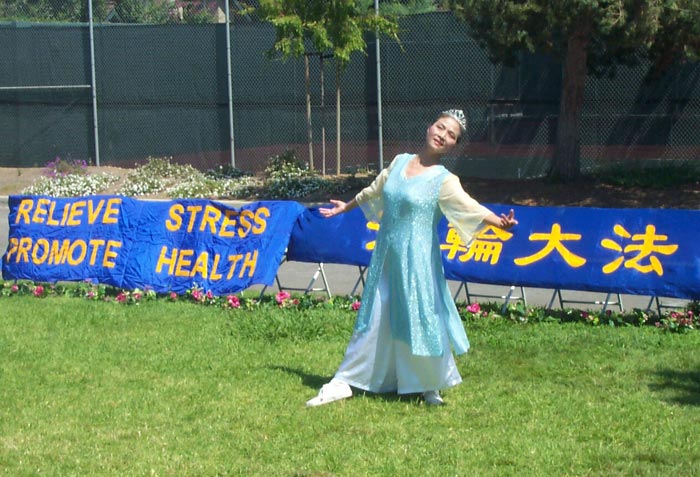 两天下来,学员们顶着烈日,不间断地表演着舞蹈并进行功法示范。尽管有累的感觉,汗水顺着脸颊而下,但是为了救度众生,他们都认真的把每一个动作做好,并赢得了阵阵掌声。学员们觉得在表演舞蹈时,也是在讲真象的一种形式,是和功法演示、发真象材料的整体配合。