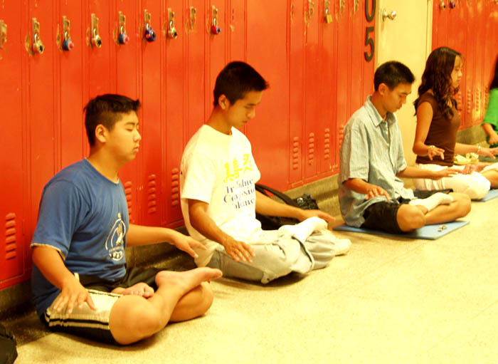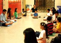 开学的第一天,学生们除了读书与认字的课程外,还炼习法轮功功法。在学炼半小时的法轮功第五套功静功的时候,学生们排成两排,面对面席地打坐,那种宁静祥和的场面很难令人相信一两分钟前还是热闹喧哗的课余休息时间。四岁的小班学生Ciras自始至终盘腿端坐在中间,虽然炼功动作还不是那么准确,但那份认真和投入的样子,真是可爱。