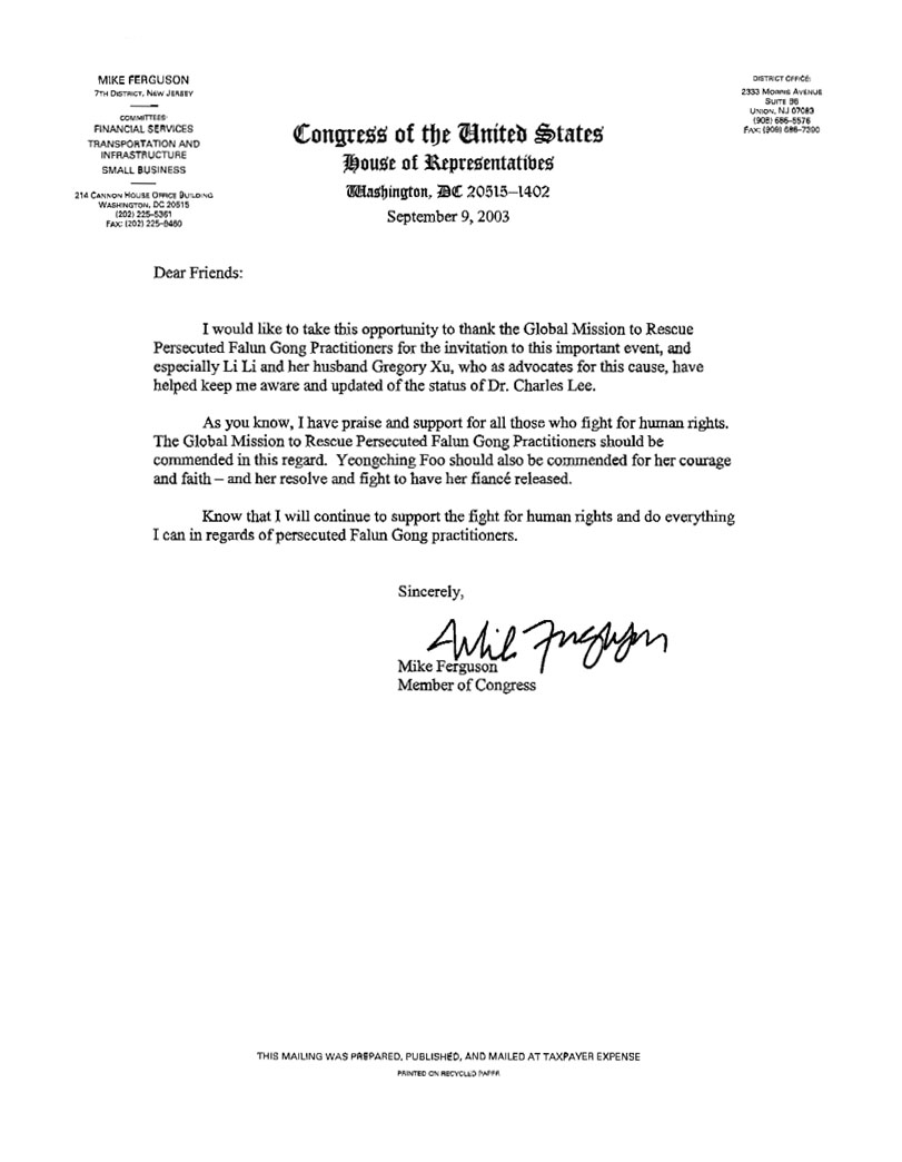请相信我一定会继续支持争取人权的斗争,并竭尽全力帮助受迫害的法轮功学员。