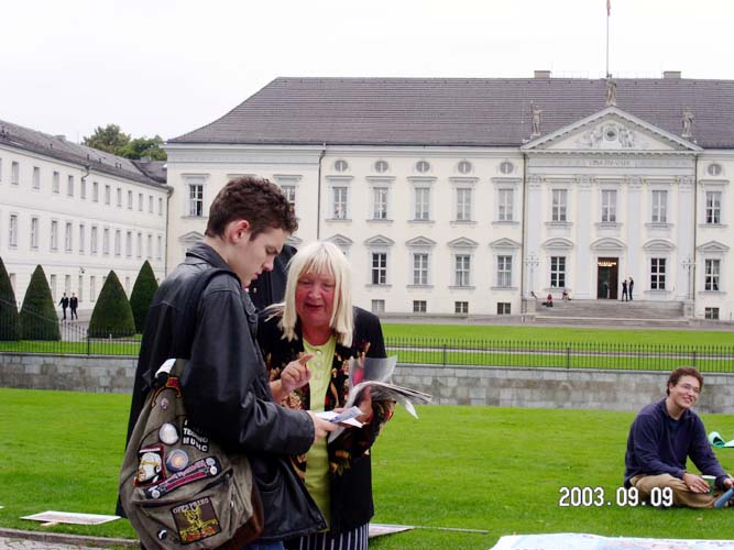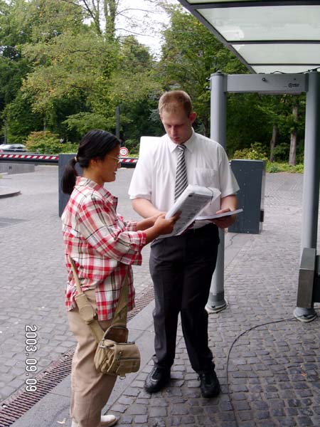 我们将四周来在瓦戈纳歌剧节上短短剧场休息时征得的近2000个签字原件递交给了总统办公室。另外还递交一套装订成册的副本,以便总统百忙之中翻阅德国主流社会的心声。签表上是8位德国学员的亲友照片和受迫害现状简介。