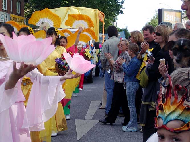 9月13-14日,英国第二大城市伯明翰市政府举办了一年一度的伯明翰艺术节。十几万来自英国各地的观众参加了艺术节的活动。在二天的活动中,法轮功学员的展台吸引了众多的观众。许多游人在展台前询问并领取大法资料及认真阅读真相展板。当学员们表演具有中国传统特色的腰鼓、莲花舞及法轮功功法时,观众把展台前的道路都挤满了。当学员展示功法时,许多游人驻足观看及拍照摄影。在这热闹的艺术节上,法轮功学员所传达的内在的宁静与祥和给很多有缘人留下了美好的记忆。