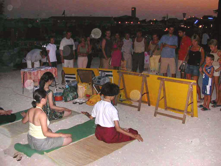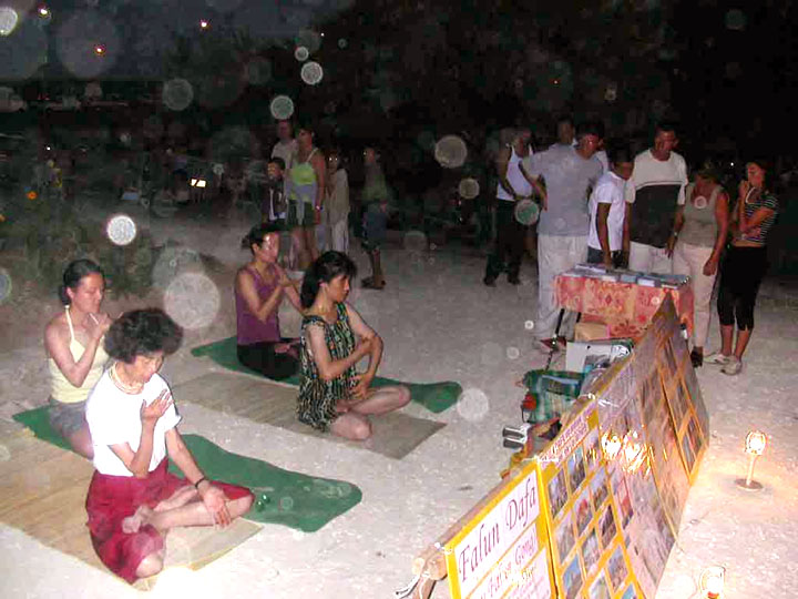 【明慧网2003年9月17日】8月份在法国罕见的酷暑天气里,大法弟子来到游人众多的法国西海岸的欧雷鸿岛(l'Ile d'Oleron)向游人介绍法轮功在中国遭