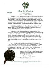 鉴于,法轮大法学员来到我市声援全美营救月活动,营救美国公民查尔斯-李及在中国遭受酷刑的家人。法轮大法是一项自我改善的修炼功法,其教导源自古老的中国文化,他能促进身心健康,并强调按“真善忍”原理做人;并且