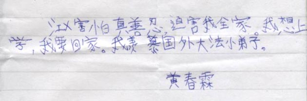 10岁大法小弟子黄春霖被迫害经历(图)