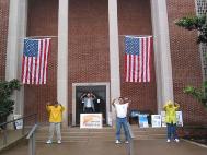 【明慧网2003年9月25日】9月13日,跨美汽车之旅来到弗吉尼亚州夏洛斯威尔市并在市政府大楼前举行了新闻发布会。当地NBC29台采访了学员并于当晚6时播放。此前,夏市市长已于9月12日签署褒奖状褒奖法轮大法、强烈谴责中国[江氏]政府对法轮大法的迫害,并呼吁中国立即停止对法轮大法学员的迫害和撤销“610办公室”。