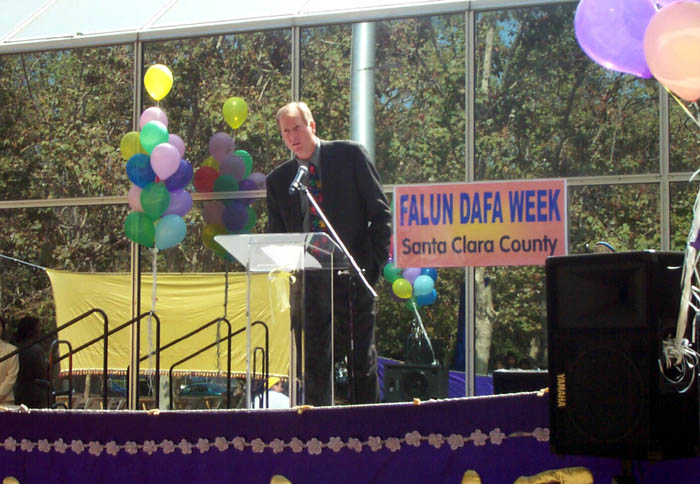 圣荷西市议员查克-理德在发言中指出:“一个政府害怕他的人民信仰‘真、善、忍’是令人惊讶的。修炼法轮功在我们国家是受法律保护的。在这里,人们有言论自由、宗教信仰的自由,以及和平集会的权利。美国不象中国政府,美国是个尊重人权的国家。重要的是我们不允许中国政府对法轮功的迫害渗入到这里。同时,我们反对中国政府对法轮功的迫害。”他还说:“我们敦促中国政府停止对法轮功的迫害。同时我们还会继续作出努力,与美国政府一起制止中国政府对非法关押的美国公民的迫害。”