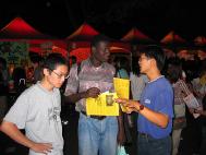 有一位同学拿了简介之后,虽然她自己没跟我们表示要学炼,但她一转头就在我们摊位前跟路过的同学们大喊:“法轮大法好!大家都过来学啊!”还有些同学则过来说:“我现在还没有想学你们法轮功,但是我就想听听你跟我说说什么是法轮功。”