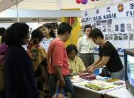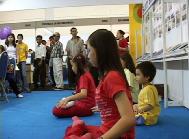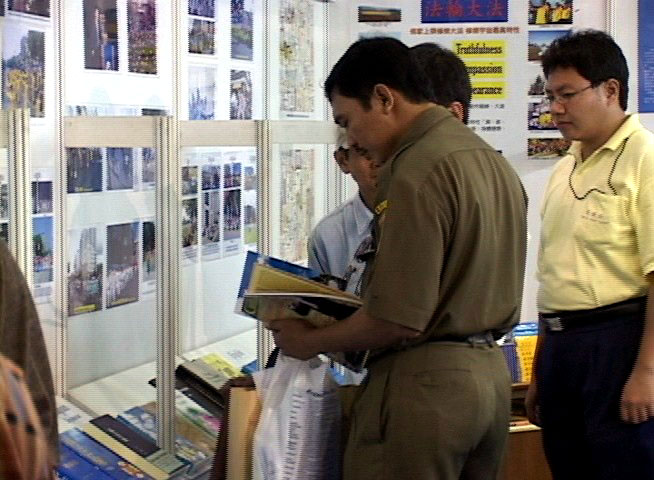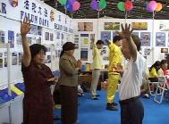 法轮功学员在现场展示功法,过往的人们一批接一批的留下来学功,也有很多人当场购买法轮功书籍和炼功CD回去学炼。包括政府的官员。展览会为期5天,约一万多人来法轮大法的展位中索取了简介资料。