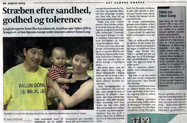 “我在中国的合伙人告诉我,警察说他们有我在中国驻丹麦大使馆前的照片和录像。为了抗议在中国对法轮功学员的迫害,我在使馆前参加了一系列的和平请愿活动。虽然我们的抗议是理智、和平的,可是他们指责我围攻驻丹麦的中国大使馆。而且,我在中国的家人也受到了迫害。我妻子的妹妹不是法轮功学员,但在她到丹麦来之前,在北京机场被扣留了。她的电话也受到监听。”
