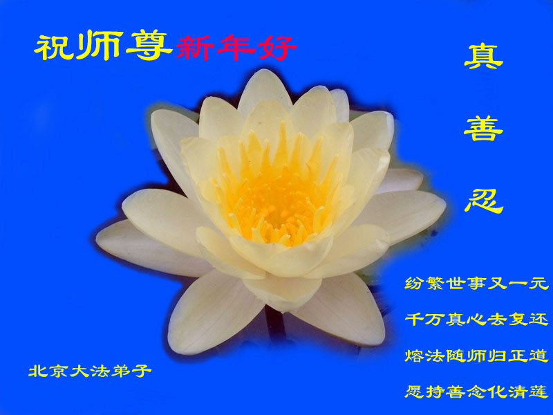 师父,我们在中国科学院得法,现在这些大法弟子分散在全国及世界各地。我们以法为师,默默做着正法时期大法弟子应该做的一切,兑现着我们曾经对师父的誓言,圆满史前大愿!祝师父新年好!祝全世界大法弟子新年好!