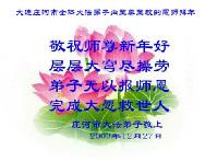 值此新年到来之际,我们东营地区全体大法弟子以最崇敬的心情向至尊至上的师父恭贺新年好!我们为能成为师父的弟子深感无尚荣光! 我们真诚感谢师父的慈悲苦度!