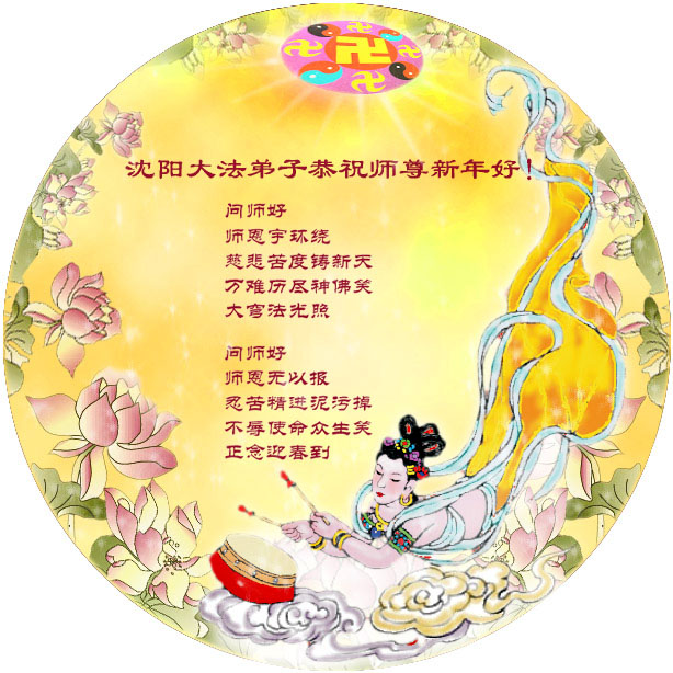 凤城全体大法弟子恭祝慈悲、伟大的师父新年快乐:师父,新年好!