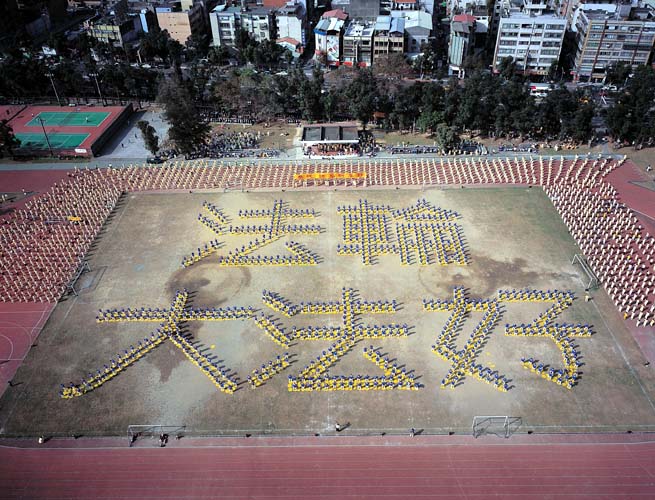来自台湾及部分欧美及亚太等海外地区的六千多名法轮功学员,元月10日至11日齐聚台北举行为期两天的修炼心得交流会暨其他系列活动。台湾总统陈水扁、副总统吕秀莲,国民党主席连战、台北市长马英九等都以书面贺电致意,台联党主席黄主文亲临会场致词。10日上午,三千多名学员排成队伍展示出「法轮大法好」之字型,向师尊祝贺新年好。